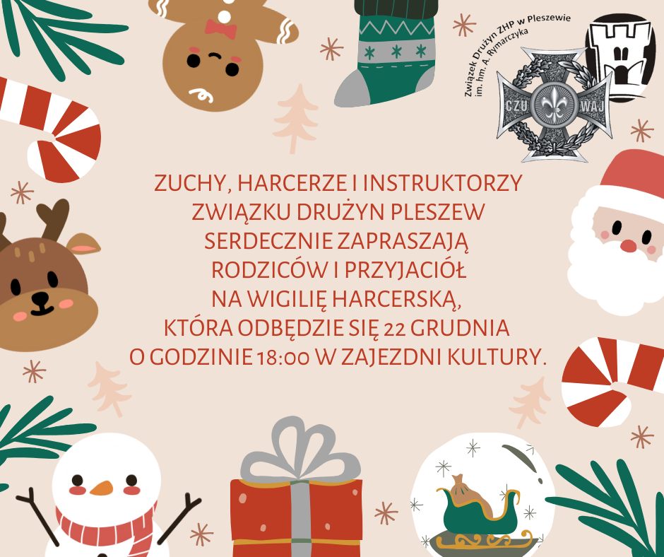 Z radością i w duchu harcerskiej wspólnoty serdecznie zapraszamy na naszą coroczną Wigilię Związku Drużyn Pleszew.