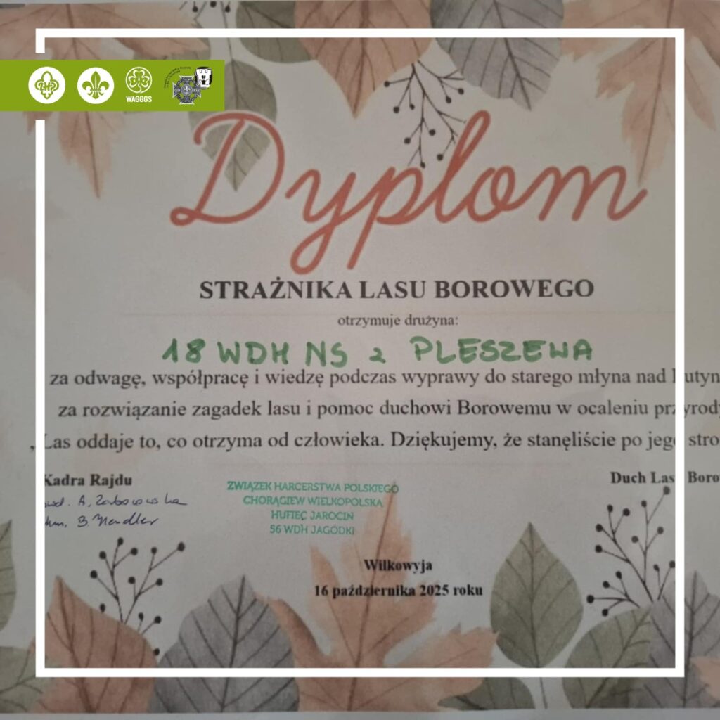 W dniu 16 października 2025 roku 18. Wielopoziomowa Drużyna Harcerska Nieprzetartego Szlaku z Pleszewa wzięła udział w Rajdzie „Młyn nad Lutynią”.