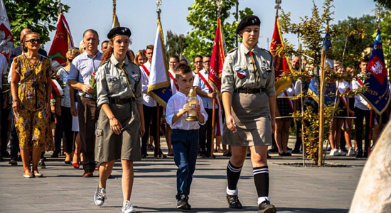- w imieniu harcerzy znicz złożyli: zuch Aleksander Pawłowski (lat 6), och. Angelika Knappe, sam. Julia Tanaś;