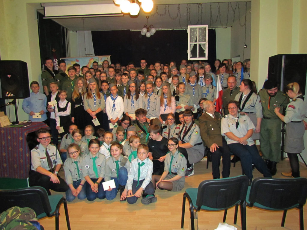 Pierwsze emocje i wrażenia opadły więc czas napisać co się u nas działo 22 lutego. To zawsze dla nas jest wyjątkowy dzień, a ten był „wyjątkowo wyjątkowy”. Spotkaliśmy się w naszej „jedynce, przybyli wspaniali goście , przyjaciele, rodzice no i my. Aula ledwo nas pomieściła, ale to dobrze, że tak nas wielu. Dużą niespodziankę sprawiła nam drużyna z Chocza, przyjechali wszyscy! Najważniejszym i bardzo wyjątkowym elementem uroczystości było odznaczenie naszego sztandaru Złotym Krzyżem za Zasługi dla Związku Żołnierzy Wojska Polskiego. Sztandar odznaczali pułkownik rezerwy Ryszard Opaliński, pułkownik rezerwy Czesław Kowalczyk, pułkownik rezerwy Ryszard Wiliński. Jest to dla nas duże wyróżnienie, jesteśmy z niego bardzo dumni. Podczas tej uroczystości został również odczytany rozkaz Komendanta Chorągwi o przyznaniu Odznaki Honorowej „Harcerska Służba Wielkopolsce” naszym instruktorom: pwd. Mikołajowi Tymeckiemu, pwd. Natalii Perlińskiej, pwd. Roksanie Ryfie, pwd. Mikołajowi Dudzie, phm. Alinie Dudzie, pwd. Erykowi Nawrockiemu, pwd. Agnieszce Szymczak, phm. Dominice Banaszyńskiej, pwd. Grzegorzowi Grytce, pwd Maciejowi Banaszyńskiemu. GRATULUJEMY. W tak ważnym dla nas dniu mieliśmy również okazję podziękować naszym przyjaciołom, bez których nie chcemy i nie potrafimy działać: