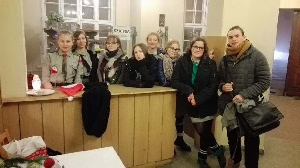 Wigilia dla samotnych 27 grudnia 2016 13 grudnia byliśmy na wigilii dla samotnych, która odbywała się w Domu Parafialnym w Pleszewie. Przynieśliśmy na nią Betlejemskie Światło Pokoju, a następnie pełniliśmy służbę w szatni, gdzie byliśmy odpowiedzialni za kurtki przybyłych gości.