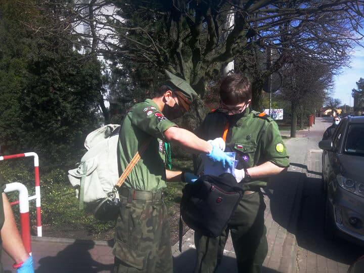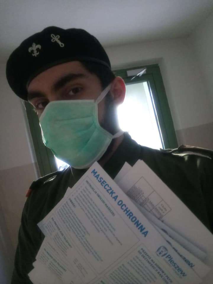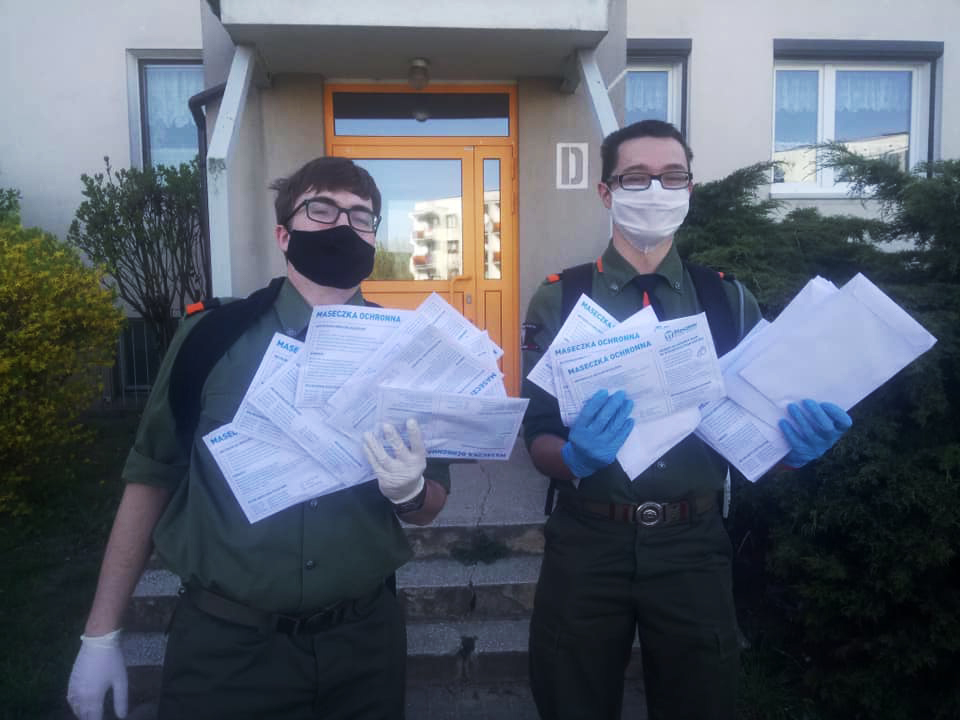 Dziś nasi pełnoletni harcerze: pwd. Eryk Nawrocki HO, ćw. Mateusz Kochanowski, mł. Filip Walendowski, ćw. Bartek Gościniak, ćw. Norbert Rybarczyk roznosili maseczki na osiedlu Mieszka I i Bolesława Krzywoustego. Łącznie udało im się rozdać 1441 maseczek.